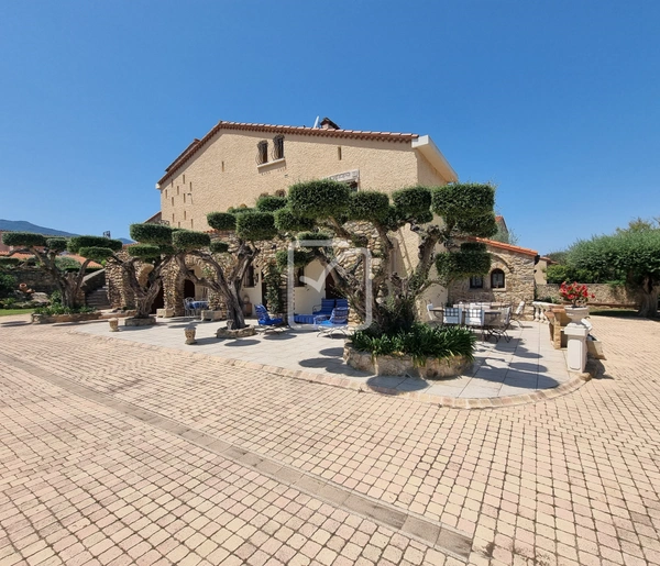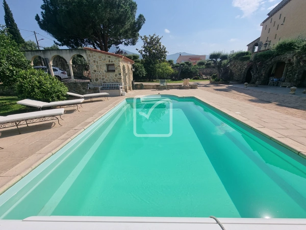Superbe propriété de caractère sise au calme d'un quartier résidentiel de Sorède sur très agréable parcelle de 2008m2 bien exposée, paysagée et arborée, de fruitiers, d'oliviers centenaires et autres essences...