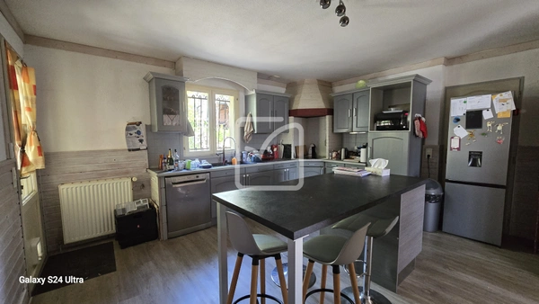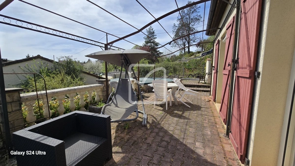 A Souillac, Fabienne et Christian vous proposent ce plain-pied de 117m2 composé d'une entrée qui dessert une cuisine équipée de 20m2, d'une pièce de vie de 40m2 exposée Sud avec accès sur la terrasse. Un couloir dessert 3 chambres, une salle d'eau et un wc, un cellier avec un accès pour le garage. Celui-ci propose une surface 37m2 avec portail et porte automatisés. La maison dispose d'une pompe à chaleur de 2025, de volets roulants solaires, double vitrage.