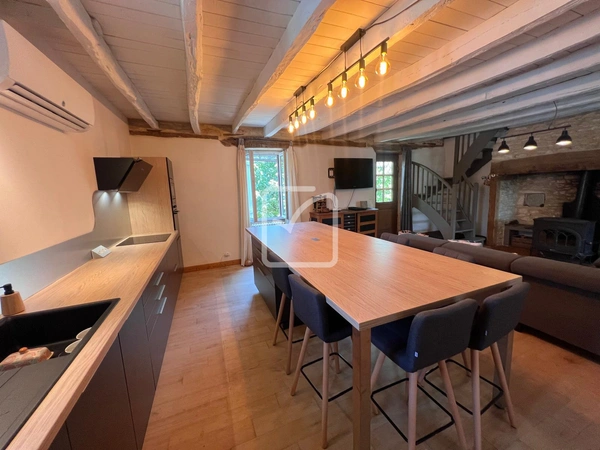 - Une maison principale de charme, rénovée avec goût, alliant le cachet de la pierre périgourdine et le confort moderne (belles pièces à vivre, 3 chambres, 1 cuisine américaine neuve, 1 salle à manger,1 salon,1 pièce à usage professionnel, 1 poêle à bois, climatisation, pompe à chaleur, ballon thermodynamique).