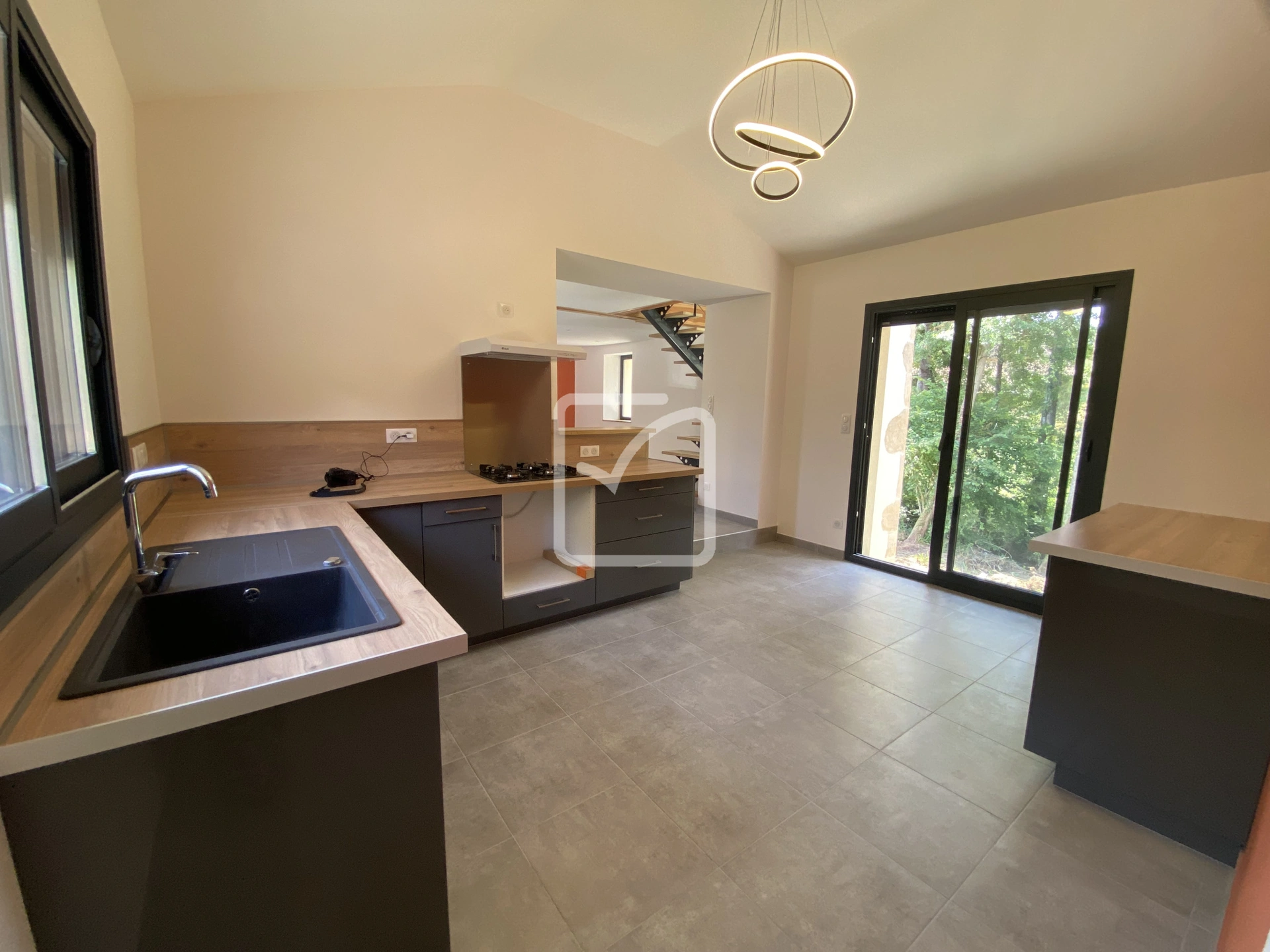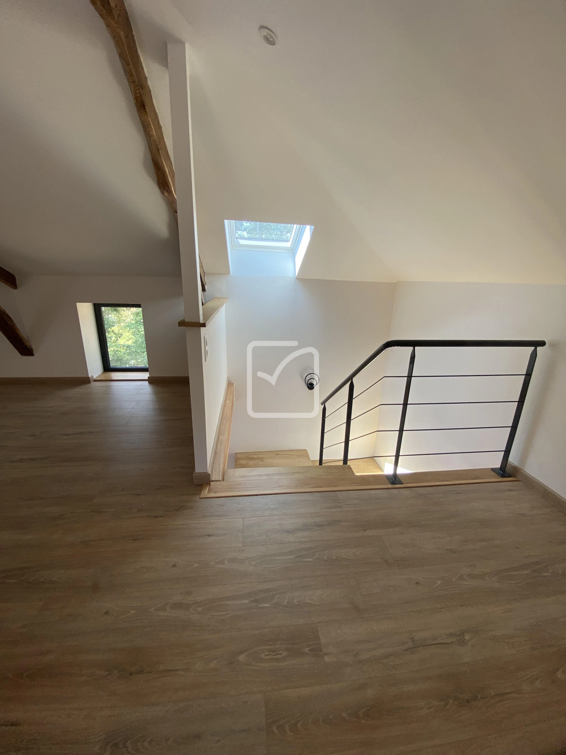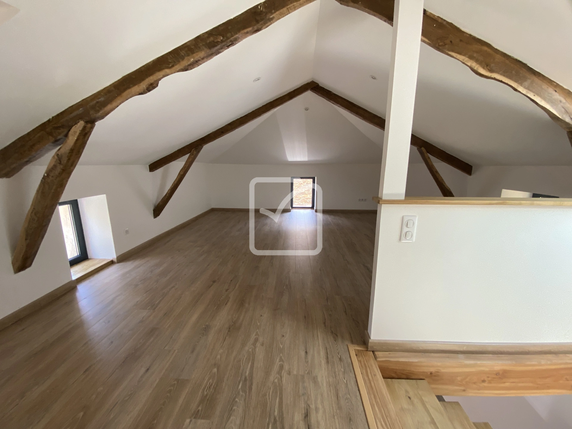 Restaurée à neuf avec des matériaux nobles, elle offre un cadre de vie harmonieux et chaleureux. Le rez-de-chaussée vous propose : 1 grande et lumineuse pièce de vie, 1 cuisine moderne semi équipée avec baie vitrée donnant sur la campagne, 2 chambres avec placards, 1 salle d'eau et 1 WC indépendant. Au 1er niveau une mezzanine lumineuse et pleine de charme sera idéale pour un espace bureau et un coin lecture. Un grand sous-sol en parfait état se divise en une partie garage avec porte sectionnelle électrique tandis que l'autre partie offre un réel potentiel : espace rangement, atelier, salle de loisirs. Cette propriété située sur une parcelle de 1000m2 environ surplombe une rivière bordée d'arbres, véritable havre de paix pour se ressourcer. Cette maison peut convenir pour une famille mais également pour un investissement locatif d'été car à proximité des plus beaux villages et sites touristiques de France.