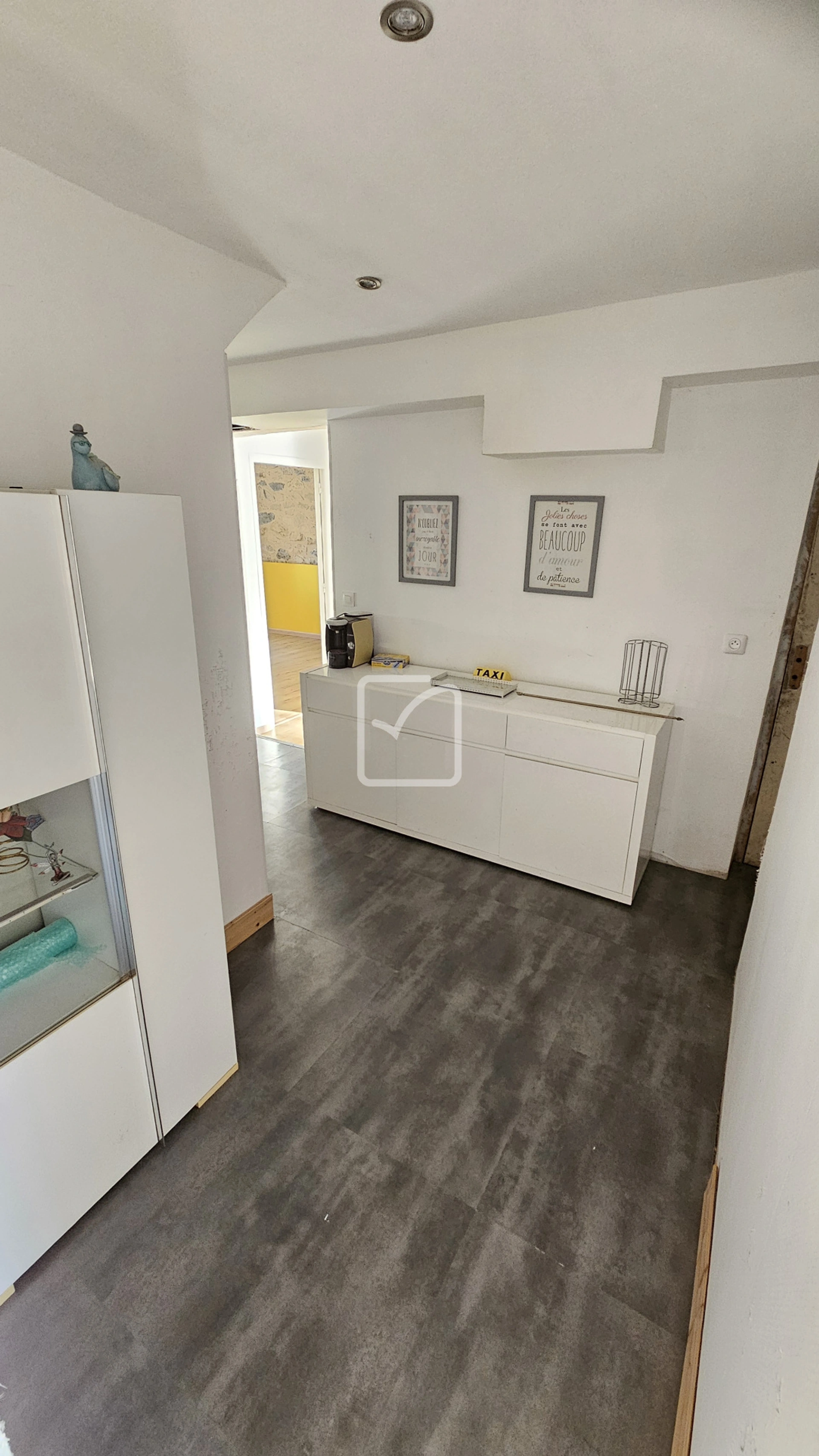 À l'étage, vous profiterez d'un salon / salle à manger lumineux d'environ 30 m2, d'une cuisine ouverte, de deux chambres, d'une salle de bains et d'un WC indépendant.