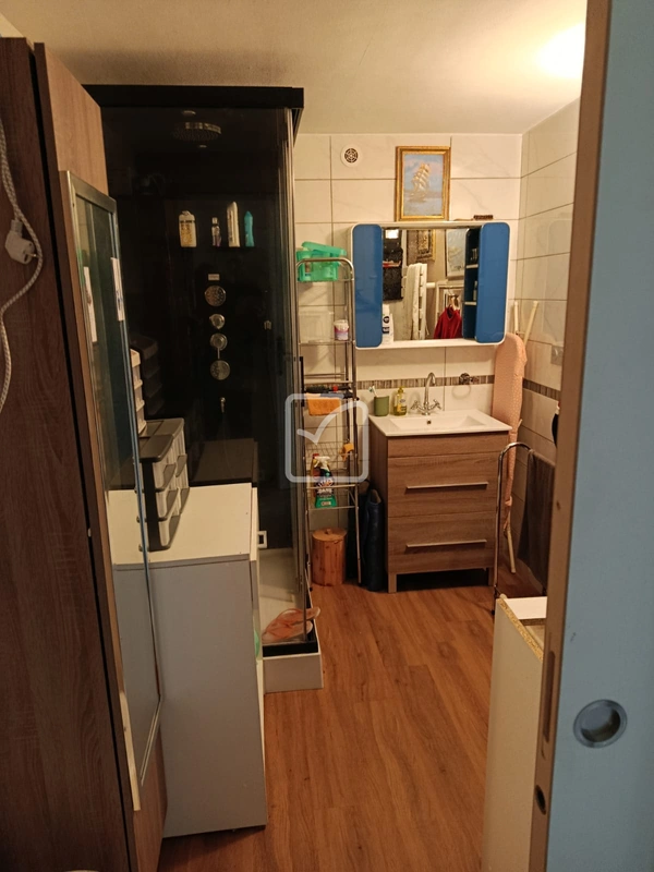 Au RDC, vous trouverez une cuisine de 22m2 ainsi qu'un salon de 34,17m2 . Ce niveau permet une vie de plein-pied grâce à une chambre de 14,9m2, une salle de douche et un wc séparé..