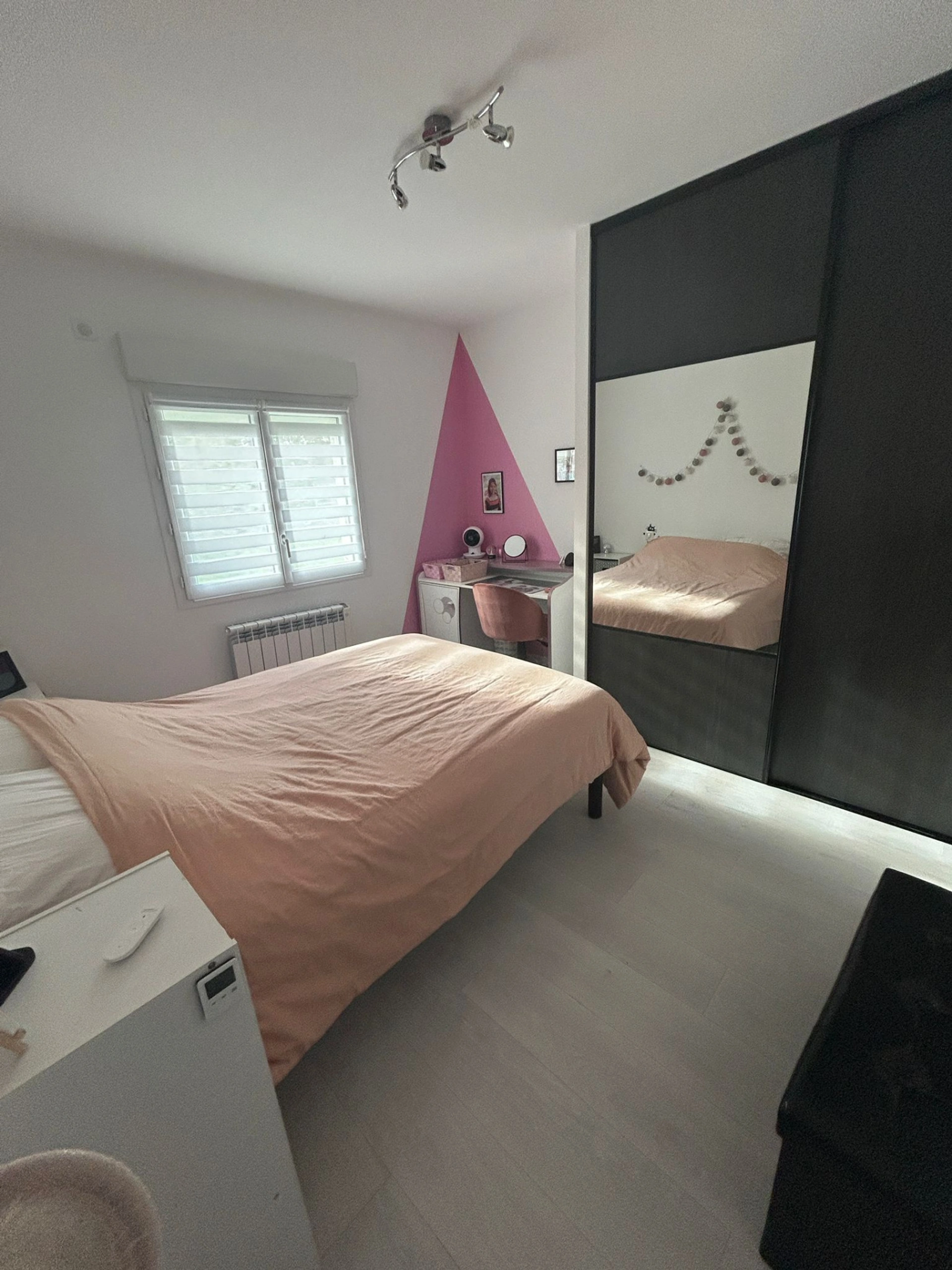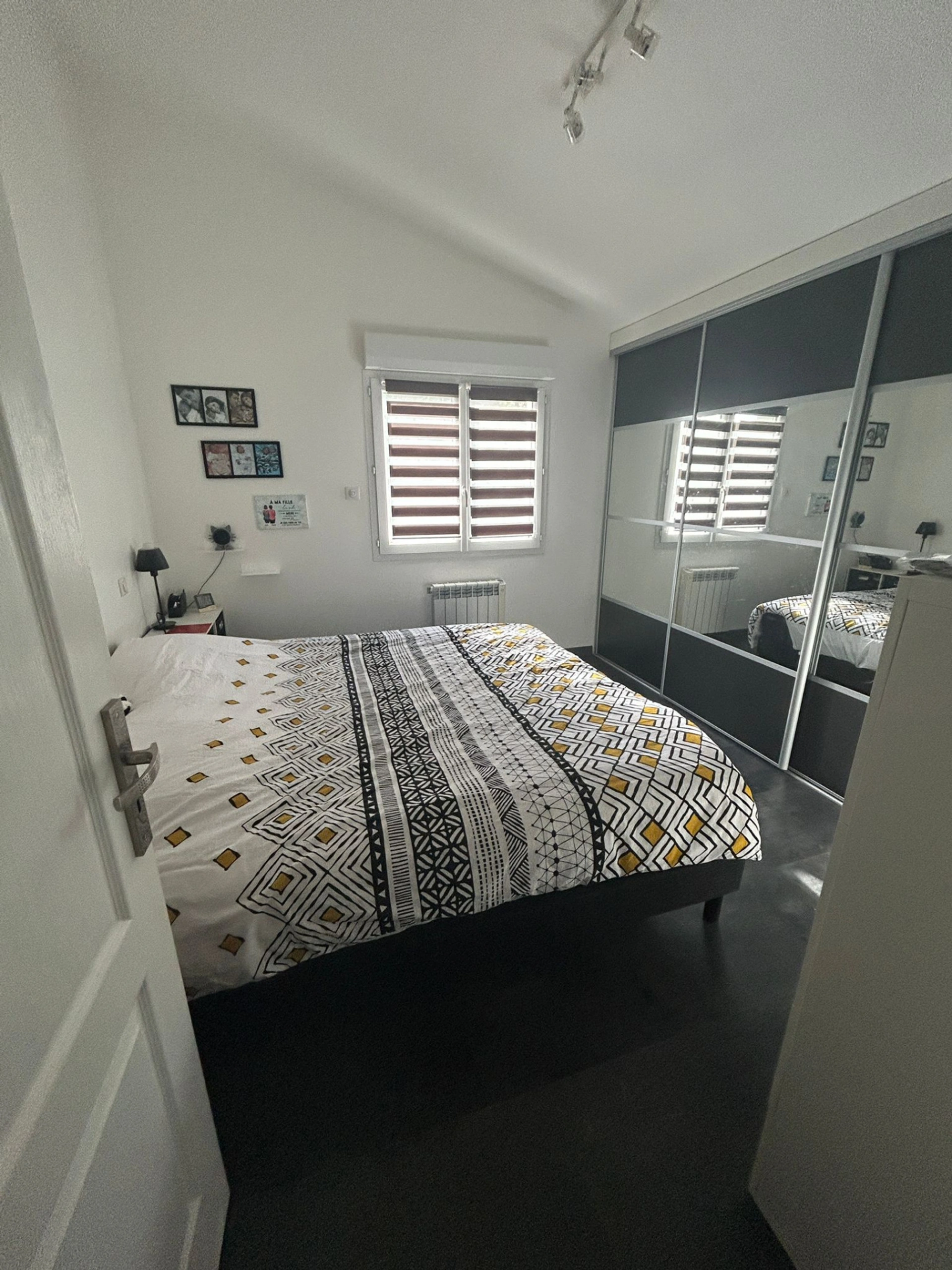 Poële à granulés programmable dans la pièce à vivre et convecteurs électriques dans les chambres. Double vitrage et volets roulants électriques .