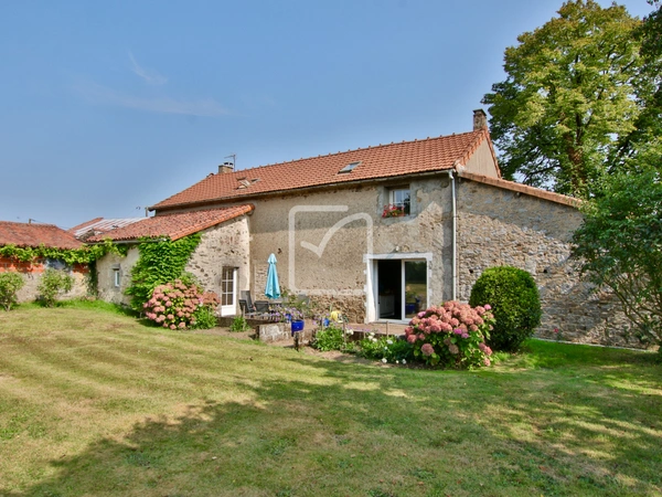 Exclusivité - Visite virtuelle disponible - Fermette typique de Gâtine proposant de beaux volumes et des dépendances sur plus de 3000m2 de terrain, à 2 mns de L'Absie pour les commodités, 30 mns de Niort. Située au calme dans un hameau, avec un jardin arboré bénéficiant d'une belle vue dégagée sur la campagne. RDC : Grande entrée, salon avec poêle à bois, cuisine / salle à manger de 32m2 qui s'ouvre sur une terrasse à l'arrière, séjour avec pierres apparentes. Dégagement qui mène à une petite salle de bains, wc, et chaufferie. À l'étage : Palier qui dessert 3 grandes chambres (dont une avec cabinet de toilette), une salle d'eau avec wc et un bureau. Belle grange d'environ 150m2 au sol avec un préau derrière, et une dépendance attenante à la chaufferie d'env. 40m2. Potager et fruitiers. Chauffage central fioul, assainissement aux normes. Votre contact : Pierre Dessombs 0684694900 - pierre.dessombs@imoconseil.com - Fluent english speaking local agent .
