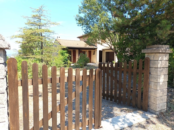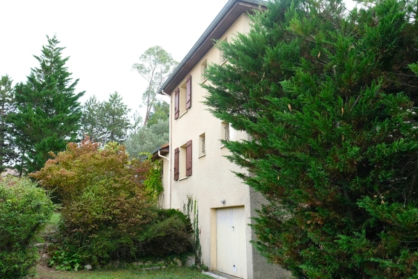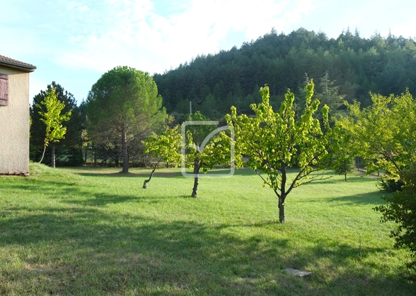 Bel emplacement en position dominante pour cette maison sur 2 niveaux, offrant 110 m2 habitables, construite sur vide sanitaire en 1987, composée au rez de chaussée d'une spacieuse pièce à vivre très lumineuse de 40 m2 environ ouvrant sur une terrasse couverte de 7,4 m2 exposée Sud Est, une cuisine séparée de 12 m2 exposée Nord/Ouest avec une belle vue dégagée sur les monts d'Ardèche, une chambre de 9 m2 exposée Nord/Est, une salle de bains, un wc séparé. A l'étage : 3 chambres ( 9,6 m2 ; 10,3 m2 ; 12 m2), une salle de bains, un wc séparé. Un sous sol de 90 m2 environ composé d'un garage de 18,4 m2 et 3 caves. Une dépendance attenante de 15 m2 (possibilité de l 'aménager en pièce habitable). Chauffage par convecteurs électriques, fenêtres double vitrage 8 mm, volets bois. Magnifique terrain arboré de 2269 m2 dont une parcelle constructible et viabilisée de 1229 m2 (lot séparé). Assainissement tout à l'égout. Quartier calme dans un environnement de nature, proche de toutes les commodités (dont écoles primaires, collège et médecins), sentiers de randonnées et sites touristiques. Renseignements auprès de votre conseiller Françoise ZANONI 06 64 59 97 84, ou francoise.zanoni07@orange.fr ou www.imoconseil.com (mandat exclusif No30598)