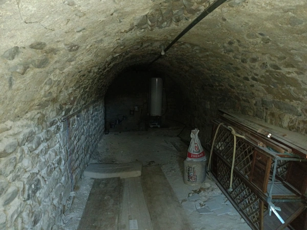 - Au RDC inférieur : un appartement sous voûtes de 70 m2 environ actuellement loué, avec jardinet comprenant une pièce à vivre de 27 m2 avec plafond à la française poutres apparentes, un coin cuisine ouvrant sur une terrasse couverte, une pièce voûtée aveugle de 11 m2, une chambre voûtée de 11 m2, une chambre voûtée de 14 m2 avec fenêtre, un salon voûté de 15 m2 avec cheminée insert, une salle d'eau avec wc. chauffage électrique radians installé en 2019. BAIL LOCATIF 3 ans, loyer mensuel 500 euros.