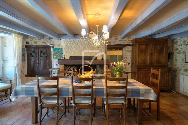 À 10 mns de Champdeniers pour les commerces et services, 30 mns de Niort, belle longère mi XIXème située dans un hameau en lisière de bois. Sur un terrain de plus de 3000m2, avec parc arboré sur l'arrière, qui comprend une grange de 55m2, une mare, une véranda 13,5m2 et une piscine couverte. Cours gravillonnée en façade. Possibilité d'acquérir une prairie attenante d'env. 4 500m2. Beaux volumes au RDC : Entrée, bureau, séjour avec poutres apparentes et cheminée/insert 42,6m2, cuisine/salle à manger 38,1m2 avec cheminée, 2 chambres, une salle de bains, wc. À l'étage, 2 paliers desservent 3 chambres mansardées, une salle de bains et un wc.. Travaux de rénovation en 2024/2025 : Toiture en partie, ouvertures, électricité, salle d'eau. Chauffage convecteurs, pompes a chaleur air/air, et bois. Assainissement autonome. Votre contact : Pierre Dessombs 0684694900 - pierre.dessombs@imoconseil.com - Fluent english speaking local agent